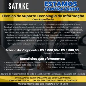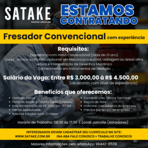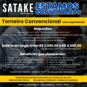 Clicando em enviar, o candidato autoriza a Satake a consultar e armazenar os dados aqui preenchidos para possíveis seleções para cargos na organização.